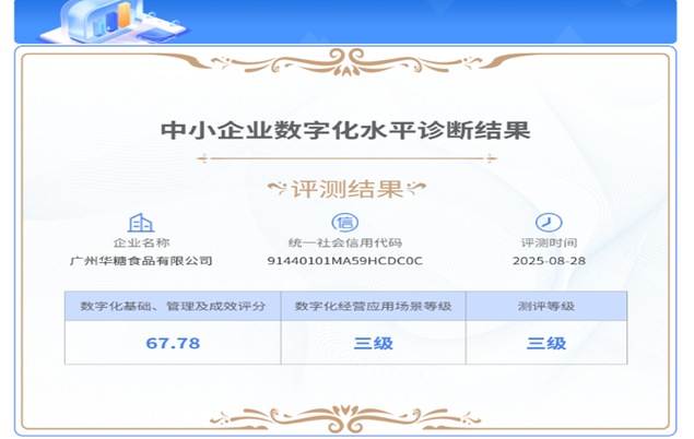 近日,红棉股份旗下华糖食品申报的“华糖中小企业数智化改造项目”顺利通过广州市工业和信息化局组织的专家审核,成功入选2025年广州市第二批中小企业数字化转型城市试点专项资金支持名单,被认定为“中小企业数字化改造项目(三级)”。